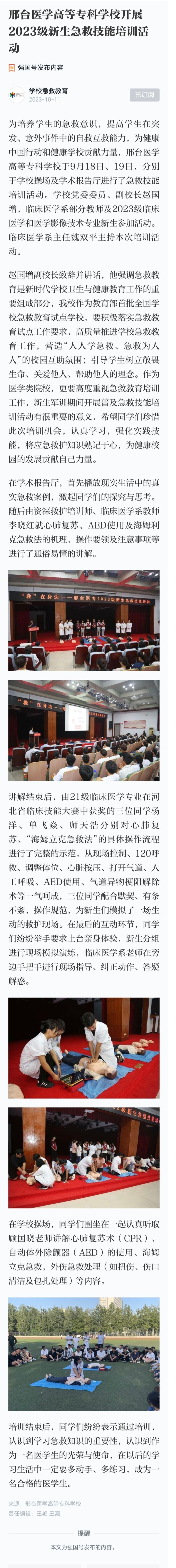 太阳集团网tyc9728开展2023级新生急救技能培训活动登上学习强国平台