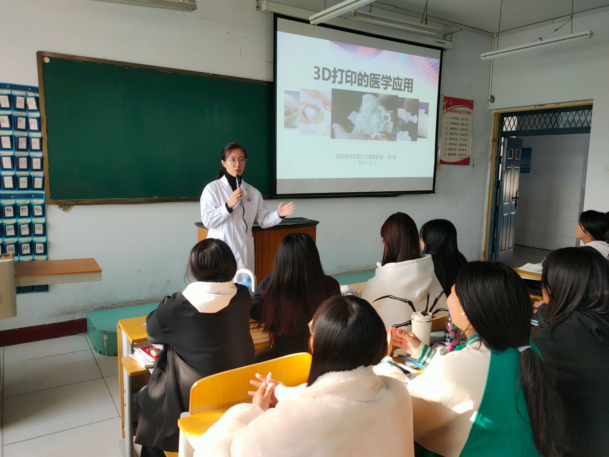 11月7日下午,太阳集团网tyc9728举办主题为《3D打印的医学应用》党员志愿服务讲座,医疗设备教研室郝婕老师担任主讲,2023级医学影像技术专业学生代表120余人到场聆听。