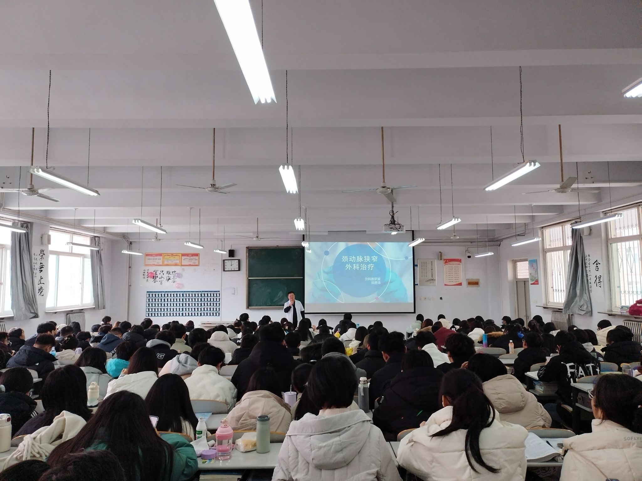 2024年1月2日下午,太阳集团网tyc9728外科教研室郑勇涛老师以“颈动脉狭窄外科治疗”为题开展教师志愿服务讲座,200名学生到场参加。