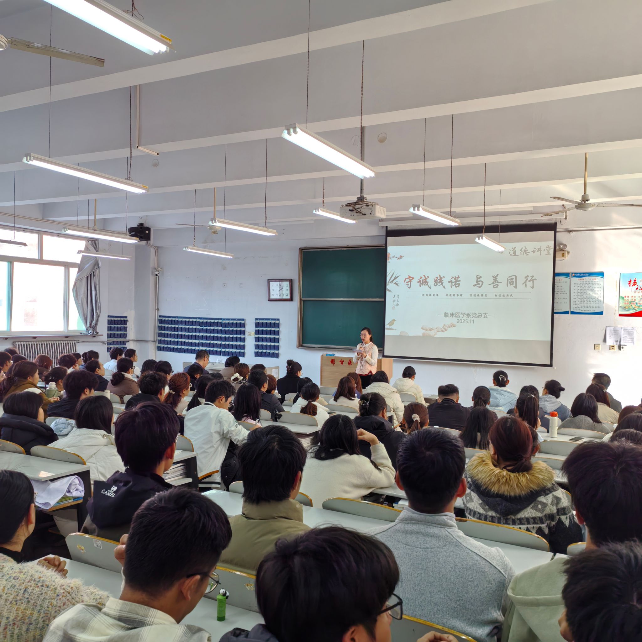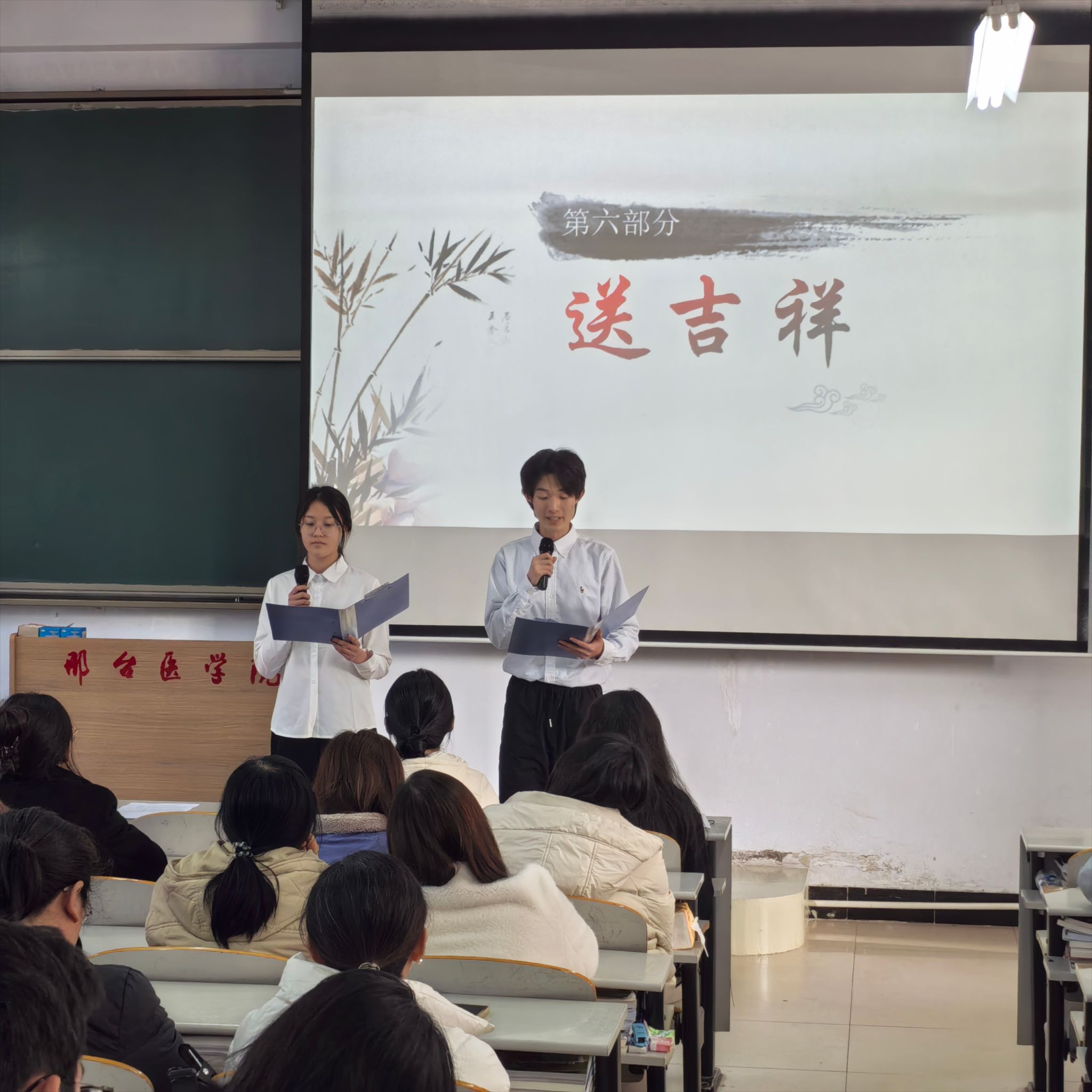 在谈感悟环节,张菲菲、杜笑娟老师表示将在教学中传递“医者的承诺重于生命”的理念,强化学生职业精神;白利娟同学表达了“以诚信筑牢从医之基,用关怀温暖患者心灵”的决心。在送吉祥环节,任柏宇、李佳怡同学献上诗朗诵《诚信立身 友善待人》,将“让承诺如清澈溪流,让善意如春风远扬”的温情寄语送给每位师生。