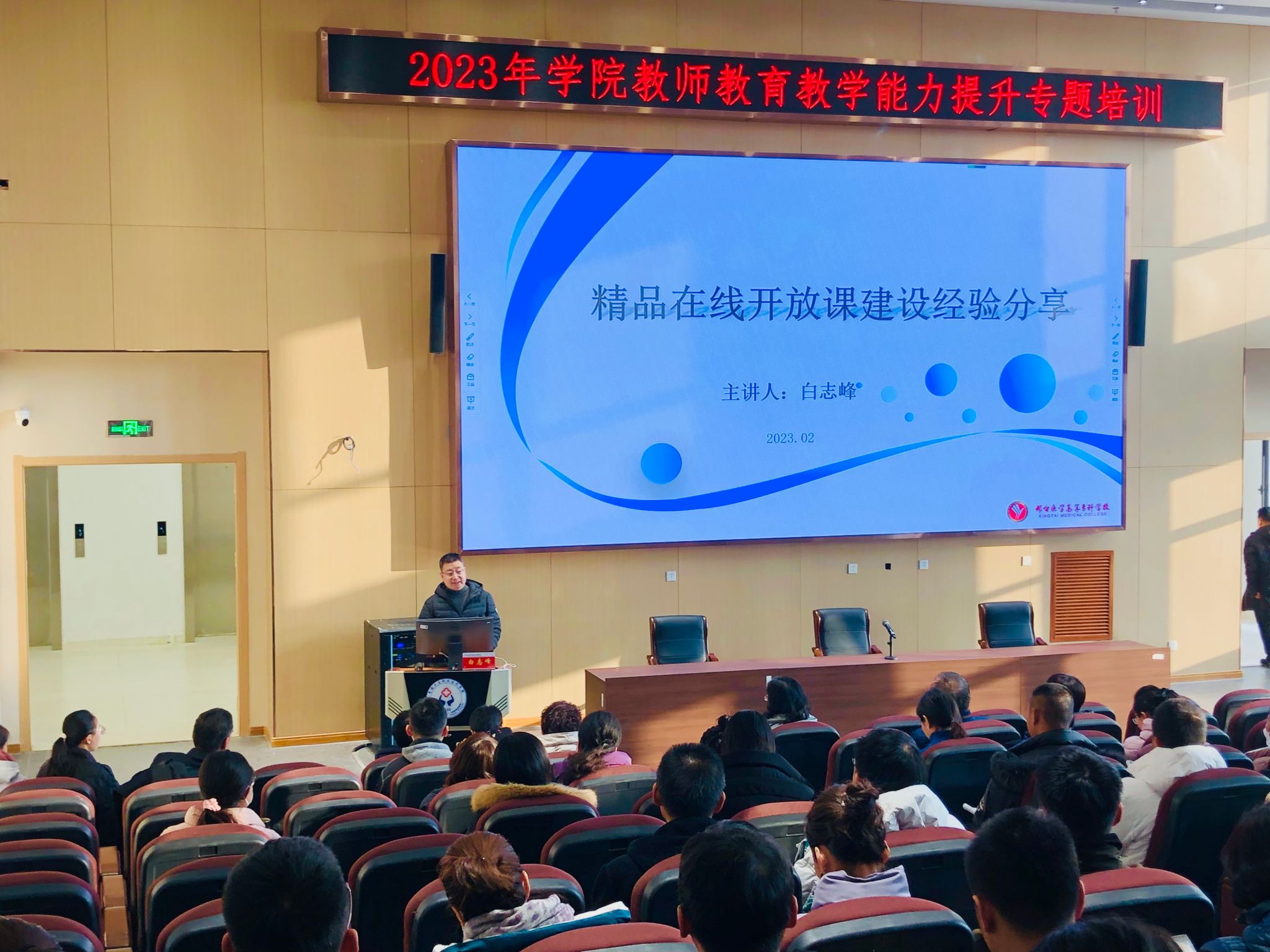 2023年2月20日,太阳集团网tyc9728副主任白志峰、国家级精品在线课程《基本公共卫生服务实务》负责人王永红老师受邀,于到青海卫生职业技术学院开展精品在线课程建设培训。青海卫职院副院长孙德俊、各系部负责人及学院全体教师参加此次培训,教务处处长朱青芝主持。