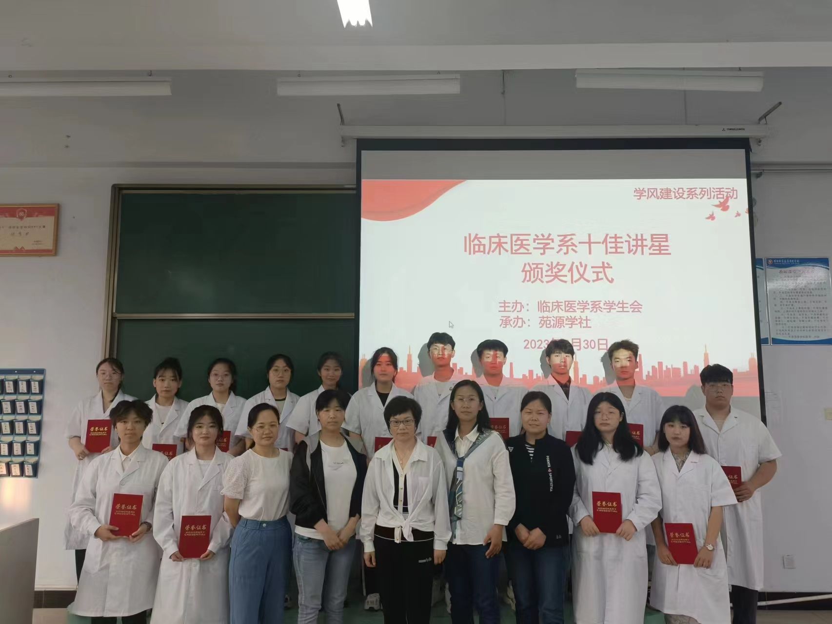 参赛同学赛前充分准备,通过一张张精心设计的幻灯片讲稿和字迹工整的板书,为在场观众呈现了一场别开生面的授课。杨洋同学“气道梗塞案例”为导入,详细的为同学们讲解了海姆立克急救法的重要性。在“偶联机制”的讲解中,庞恺心同学用自己的手写笔记简单清晰说明了偶联是生成能量的桥梁。张经纬同学在“炎症的概念及原因”中带领同学们重温了“变质 渗出 增生”等病理学的基本概念。李沛彤同学通过《甄嬛传》讲解的英文《The Legend of Zheng Hua》、孙铂佳同学通过嵌入热短视频讲解的《布洛芬》的精彩表现获得了在场观众的阵阵掌声,最后,杨洋等十名同学在比赛中脱颖而出,被评为“十佳讲星”,担任下一届苑源学堂的“小老师”,为同学们日后的学习和生活提供帮助。