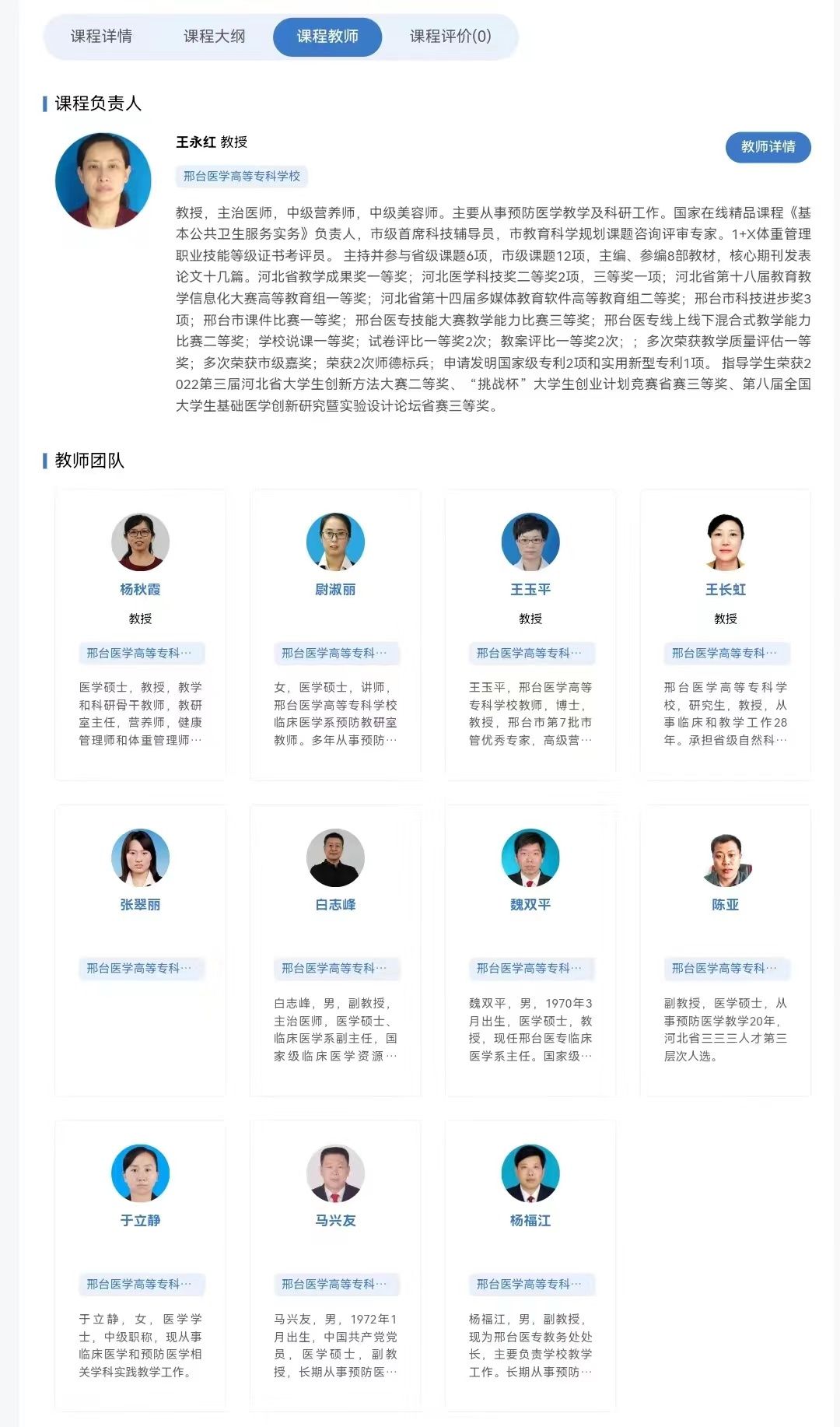 据悉,《基本公共卫生服务实务》课程自筹备开设以来,课程负责人王永红带领课程团队投入了大量时间和精力,重构了课程体系,精心设计了微课,丰富了课程资源,共录制了54集授课内容。该课程受到国内多所院校在校生和社会学习者广泛好评,于2022年入选“职业教育国家在线精品课程”。目前,该课程在智慧职教MOOC学院和学堂在线平台同时运行。